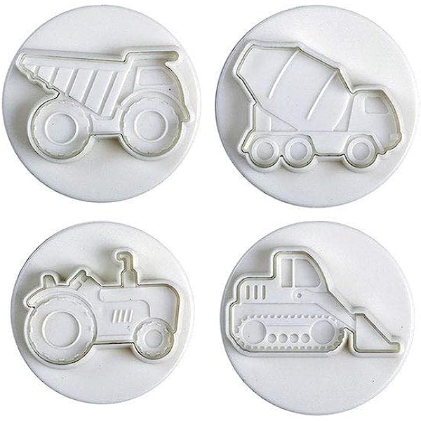 Juego 4 cortadores vehículo construcción plástico con expulsor.